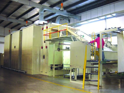 This machine is used for tentering and drying of blankets, carpets, coral fleece fabrics, as well as cotton, polyester, and blended fabrics.